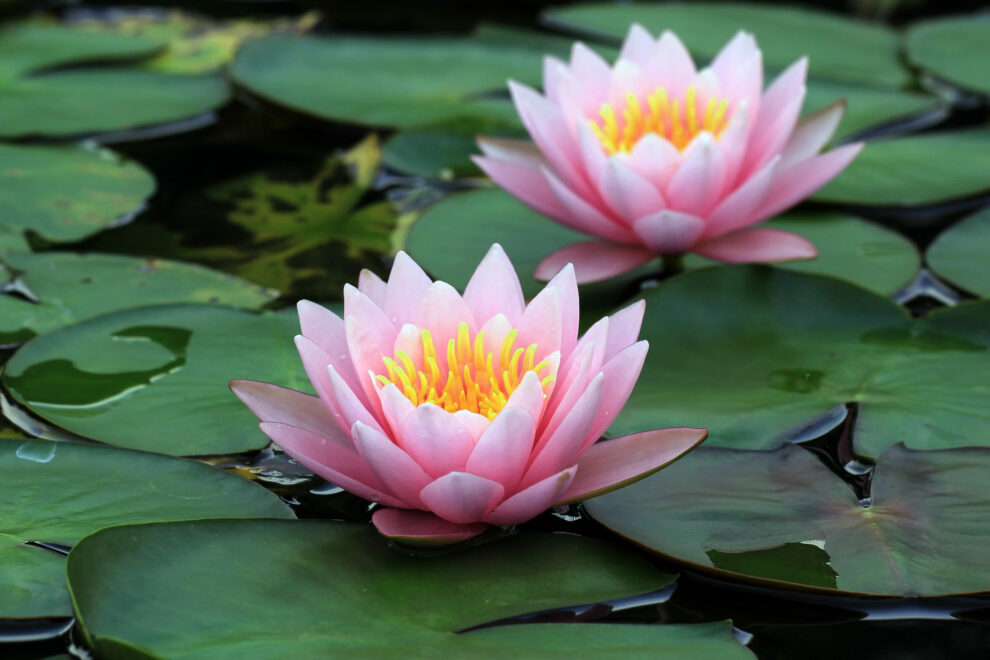 花色可以从白色、黄色、红色到粉色变化。甚至有一种被称为“黑色”的睡莲,因此在选择睡莲品种时,首先确定你想要的花色,然后找到适合你池塘大小的品种。