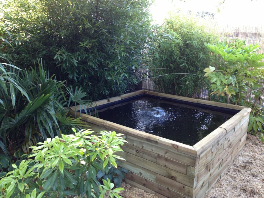 建造抬高式池塘最简单的方法是使用铁路枕木。无论是新枕木还是旧枕木,都非常坚固,这意味着它们在用密封胶连接时能承受水的压力而不会弯曲,同时还能为抬高式池塘提供正式的建筑墙体。