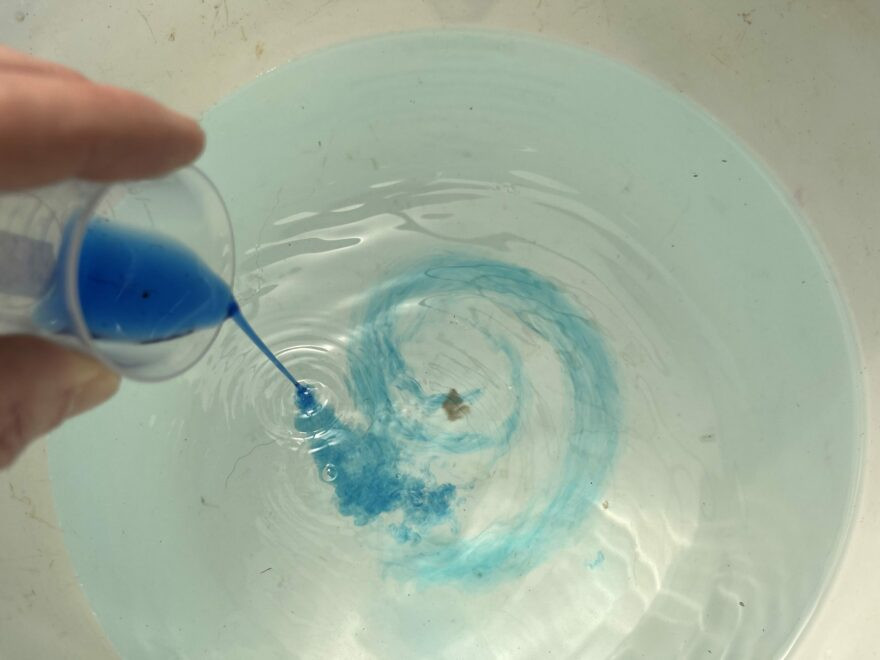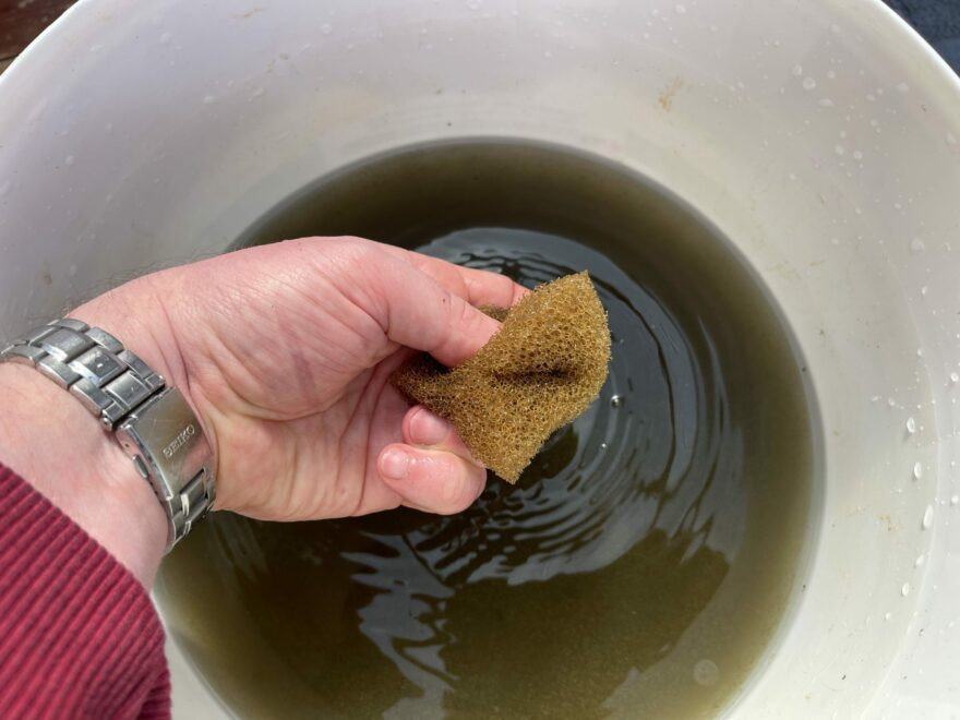 7. 在桶里的旧鱼缸水中清洗海绵