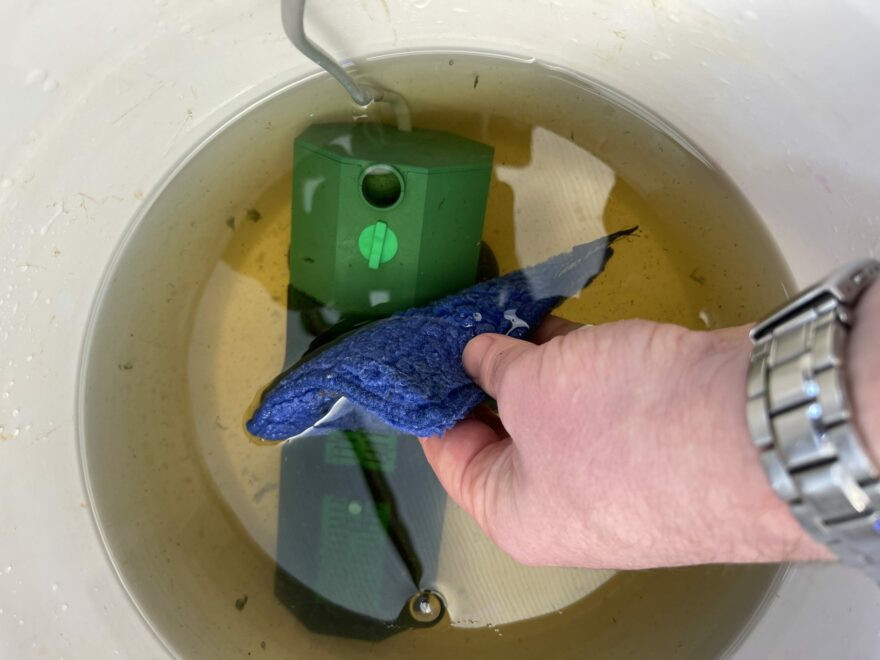 6. 从过滤罐中取出脏海绵