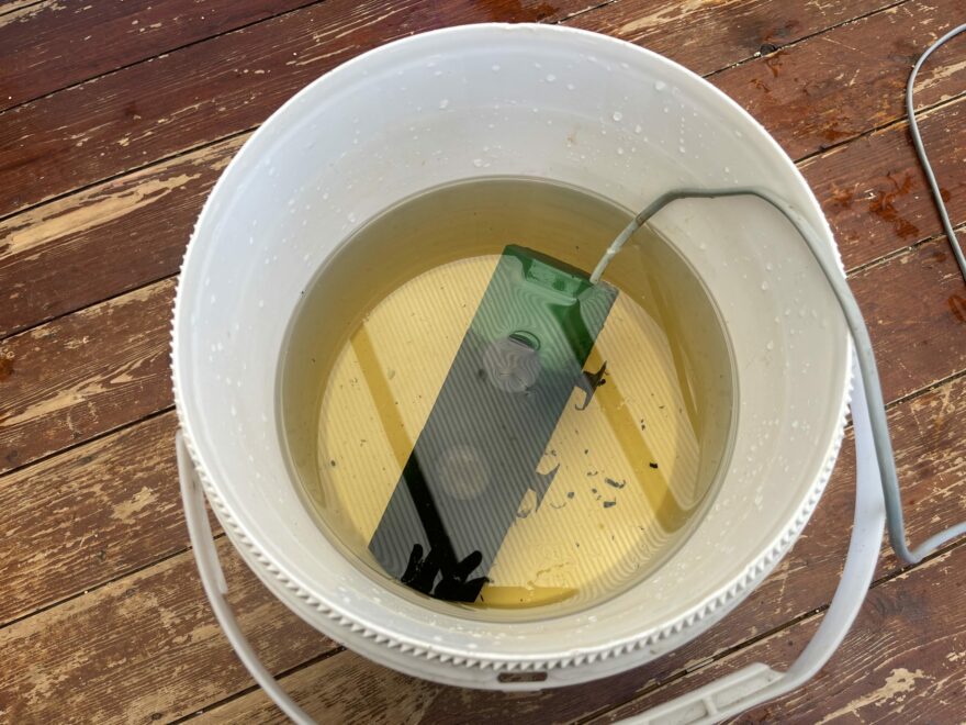 3. 将过滤器罐放入装满水的桶中