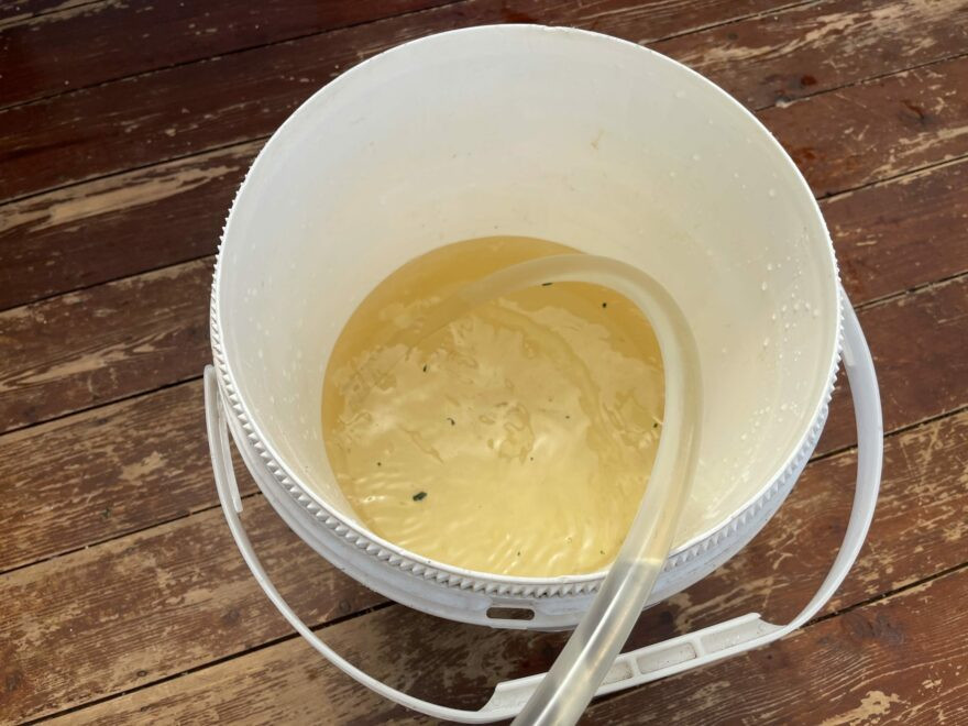 2. 将一些鱼缸水吸到桶里