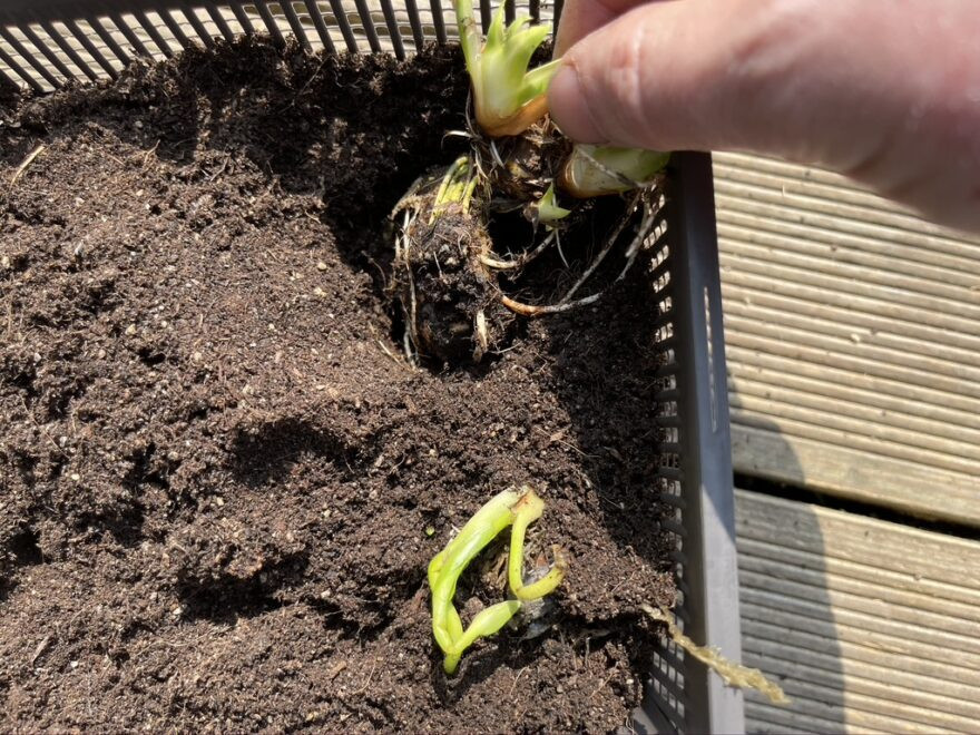 5. 将水生植物和根部推入水生动土中,留出空间供其生长。