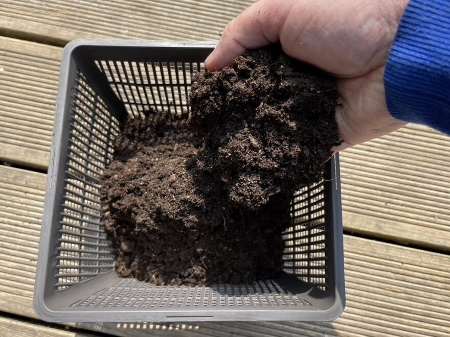 3. 用水生动土填充植物篮。