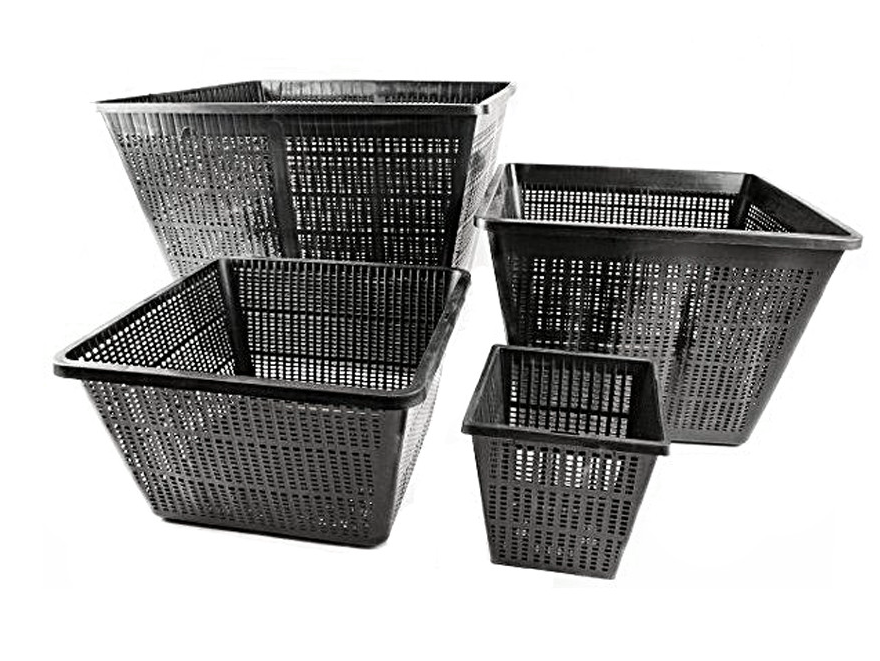 首先,你需要种植篮子。平均的边缘池塘植物至少需要一个直径22-23厘米的种植篮,有圆形或方形两种形状可供选择。如果可以容纳更大的,请尽量选择,而且轮廓形的篮子又大又薄,仍然可以放在边缘平台上。而对于睡莲来说,40厘米的篮子更好。
