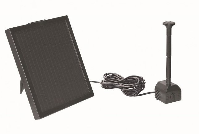 太阳能驱动的池塘泵要么配备一个独立的矩形太阳能电池板,放置在泳池边距泵最多五米远的地方;要么采用集成式面板的自给自足的漂浮式太阳能喷泉,放置在水面中央。