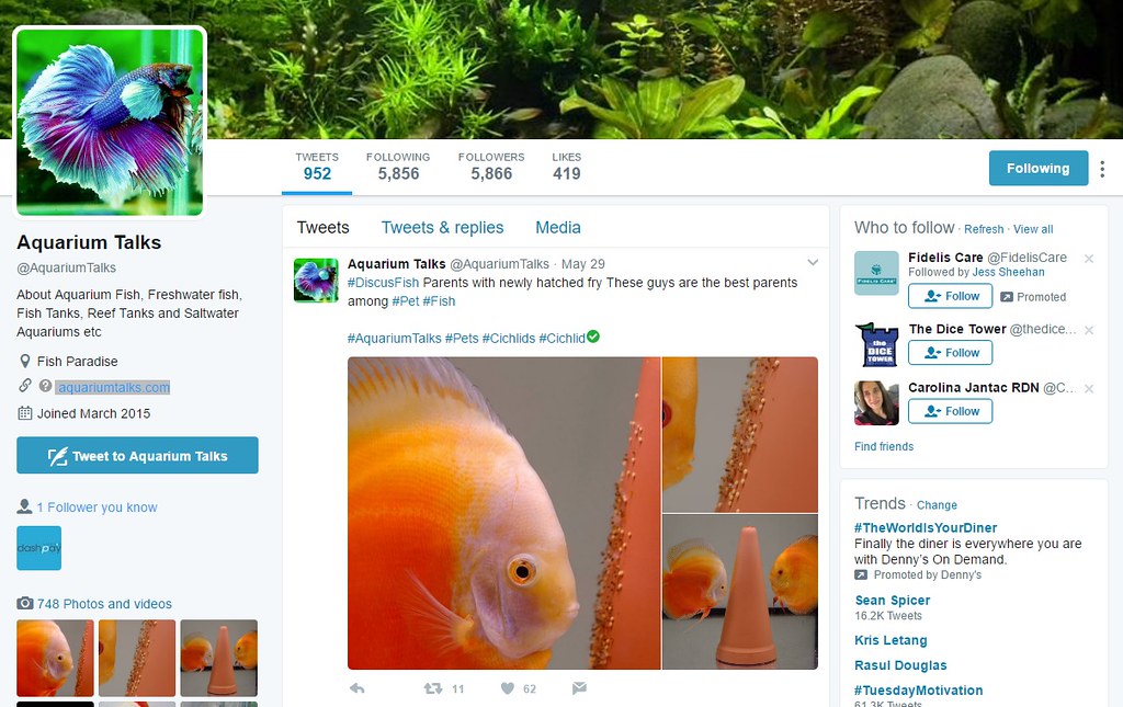5月29日,Twitter账号@AquariumTalks发布了一张橙色孔雀鱼夫妇照顾刚产下的卵的照片。照片配文写道:“刚孵化的小鱼……这些家伙是#宠物#鱼类中最好的父母。”