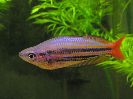 虹鳉——这种鱼一般体长不超过12.7厘米,展现出非常美丽的色彩。虹鳉在热带群居水族箱中表现良好,并且在家庭水族箱中容易繁殖。只需确保水族箱中只有一条雄性即可,并喂食富含营养的食物以最大化其色彩。