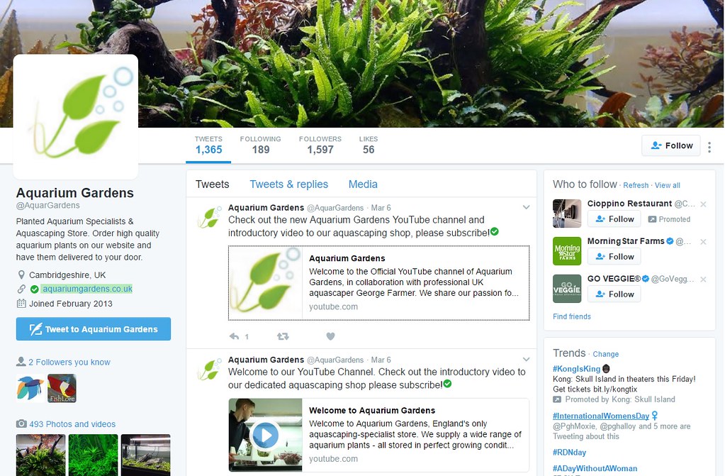 3月6日,Twitter账号@AquarGardens 宣布推出一个新的水草造景YouTube频道。该Twitter账号隶属于Aquarium Gardens公司,这是一家总部位于英国的公司,专门销售水草造景用品。该YouTube频道不仅是为了推广Aquarium Gardens的水草造景用品,也是为了教育水族爱好者如何进行水族箱装饰。目前只有一个视频可供观看,但该公司计划在未来几周内发布更多内容。