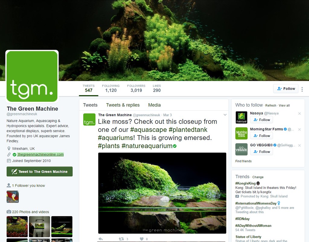 虽然你可以使用许多不同类型的水族箱植物来进行水草造景,但最近最受欢迎的选择之一是水生苔藓。3月3日,Twitter账号@GreenMachineUK 发布了一张其水草造景水族箱的特写照片,展示了一片茂密的水生苔藓地毯。该Twitter账号由The Green Machine运营,这是一家总部位于英国的水草造景和水产养殖公司,由James Findley创立。The Green Machine 提供水草造景用品以及教学视频。