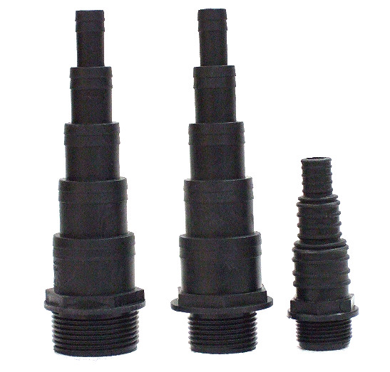 池塘泵通过软管尾部接头连接到软管,接头可能只有一种尺寸,也可能在一个盒子中包含多种尺寸,或者最常见的是一种可调节的软管尾部,可以切割成适合三种或四种不同直径软管的尺寸。