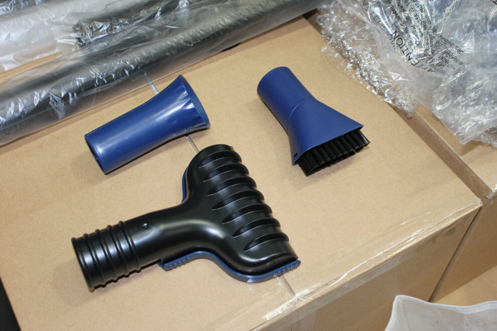 Oase Pondovac 4 配备了一系列工具,使清理池塘和去除特定类型的杂草或藻类更加容易。从左至右依次是:藻丝工具、刷子工具和通用工具。Pondovac 还配备了湿吸工具和大工具。