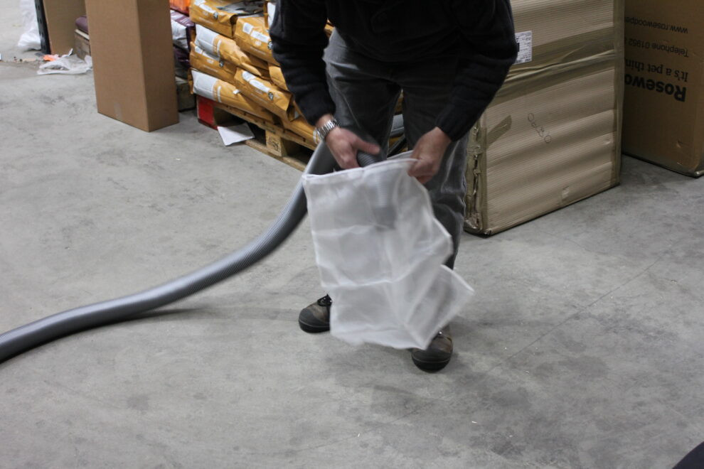 Pondovac 配有一个白色袋子,可以用来收集废物。这个袋子可以放在池塘上,使水过滤回池塘,同时收集废物。有些人选择将水收集到桶中。许多人利用从池塘中抽出的水和废物来给植物和花床施肥,将软管直接对准土壤和植物。